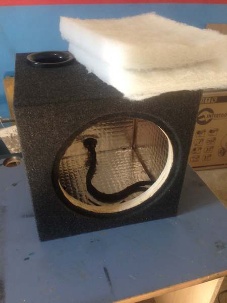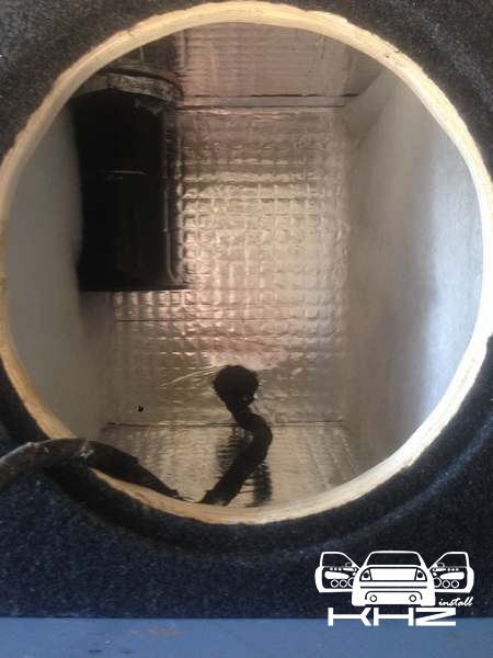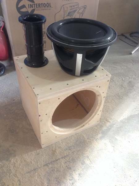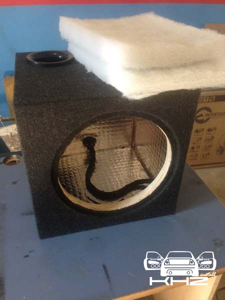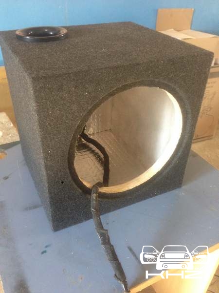 Робився цей корпус за офіційним кресленням від Hertz. Причому що дуже зручно, виробник розписує чітко модель фазоінвертора і наповнювача, який рекомендує у своїх кресленнях. Отже склад: 18-шарова фанера, фронтальна стінка в два шари (все таки 750 Вт номіналу, це вам не жарти), фазоінвертор AZ Audiocomp AR 80V, наповнювач AZ Audiocomp Fonoform, який успішно можна замінити звичайним листовим синтапоном потрібної товщини, віброізоляція 3,5 мм Fantom Batoplast 3,5.