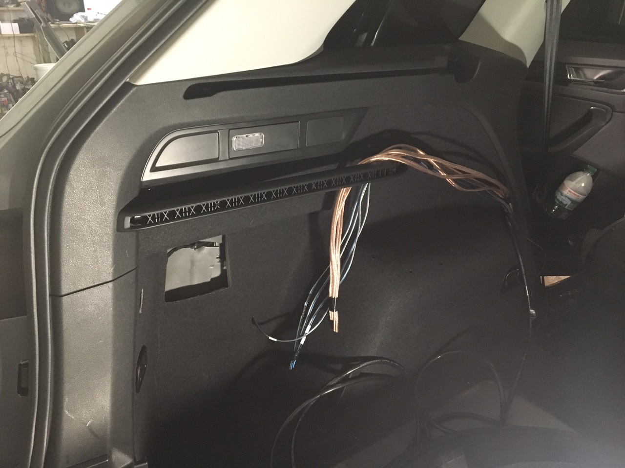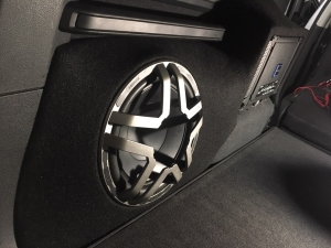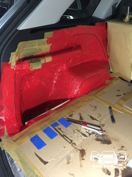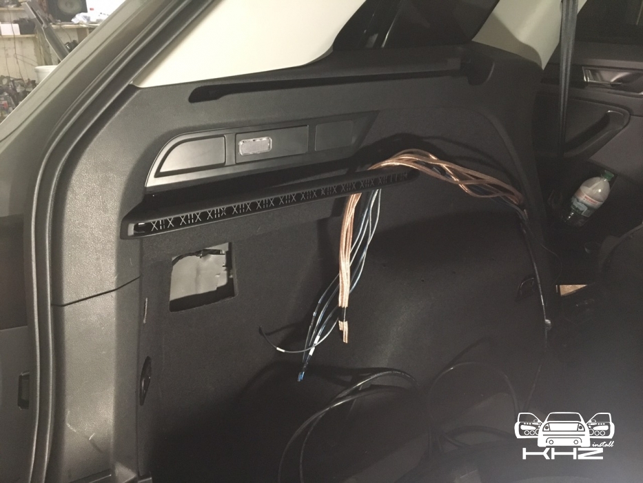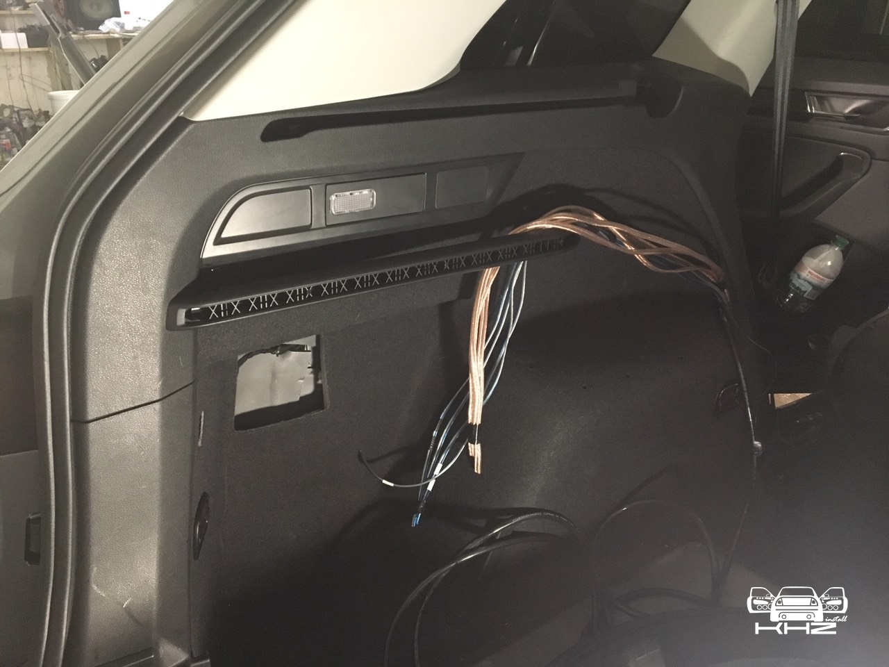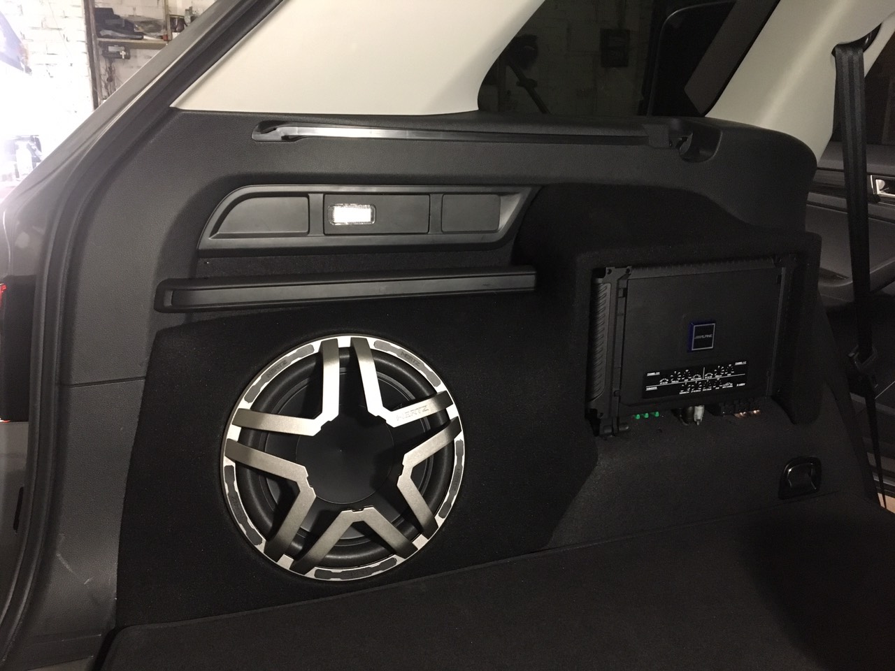 Короб сабвуфера відокремлений перегородкою від корпусу підсилювача, і має об'єм в 25 літрів, далі ми завели сабовий кабель в короб, поставили перемички на сабвуфері, так як він 2-х котушковий і буде працювати в 2Ом. І приступаємо до перетяжки нашого виробу для Skoda Kodiaq в чорний карпет, далі ми кріпимо наш мультикороб до металевих фільонок автомобіля, і правильно підключаємо підсилювач звуку в Skoda Kodiaq, на фініші презентуємо вам такий результат, над яким ми продуктивно працювали.