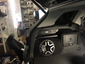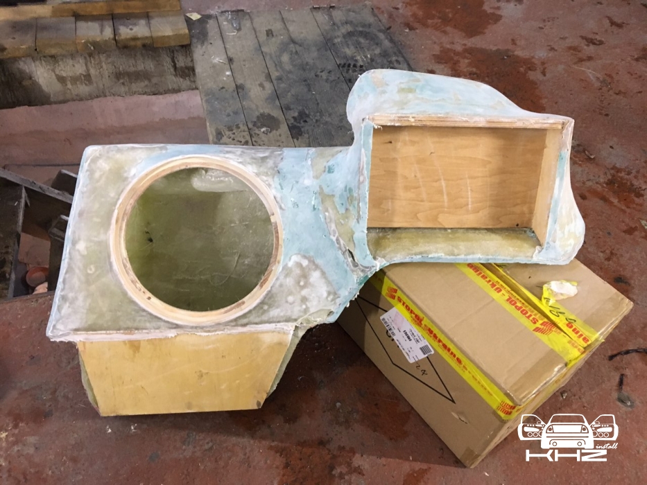 Кільце було встановлено в короб під сабвуфер, так само посадкова коробка під підсилювач звуку, і все це сформовано в даний виріб: