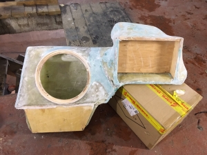 Обклеїли матрицю знімаємо і починаємо працювати над потовщенням стінок, процес цей не швидкий і вимагає деяких знань. Тим часом тягнемо всю проводку від магнітоли й акумулятора до місця, де буде розміщено підсилювач звуку, оскільки цей виріб дуже складний, робимо креслення і далі робимо коробку для розміщення підсилювача звуку в нашому стелсі.