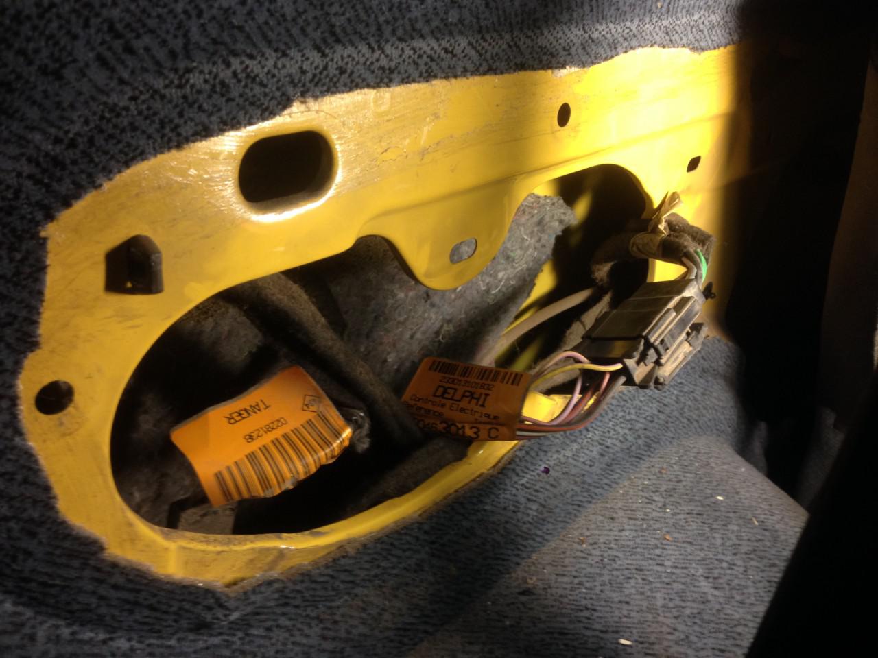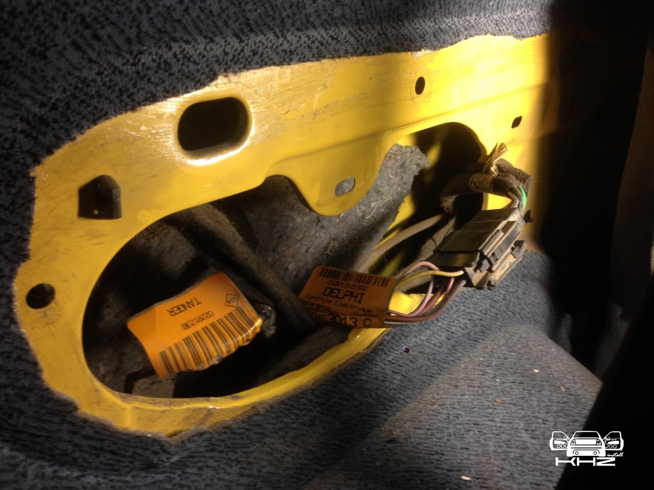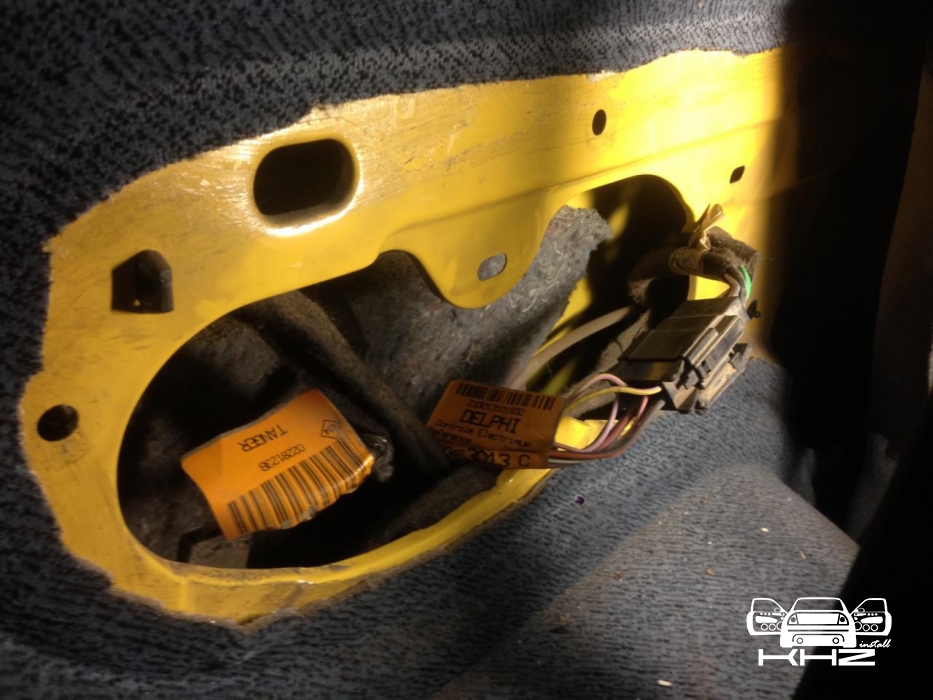 Розмітку зроблено, зайву тканину видалено, все рівно, тепер у роботу вступають електро-інструменти. Лобзик творить чудеса, тепер потрібно було знайти місця, в які можна було підключити проводку акустичну, ми трохи розібрали обшивку салону і знайшли акустичну штатну проводку, і ми в неї врізалися) Кабель був обраний найпростіший, перетином 4 мм фірми AUTOFUN.