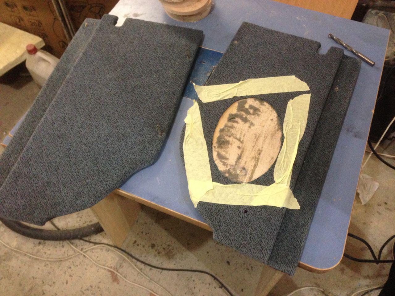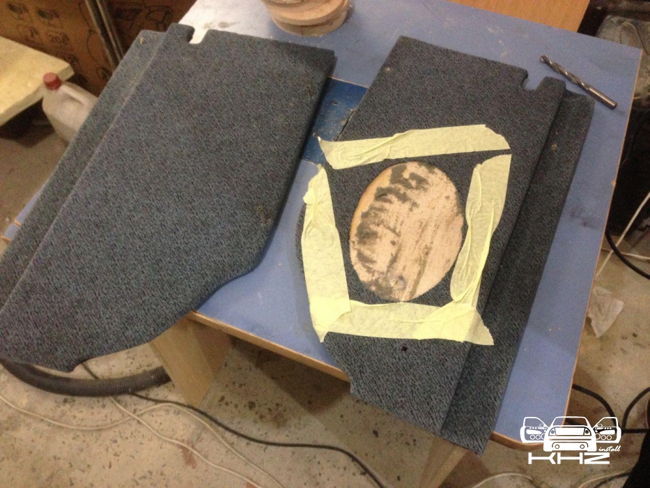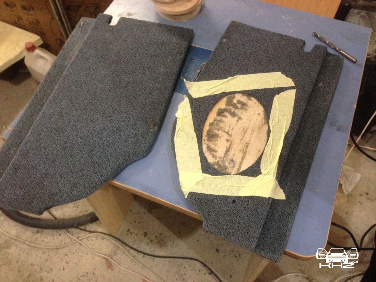 Насамперед обирали куди можна без болю їх встановити, щоб менше різати кузов або інші частини оздоблення салону, і ми знайшли ідеальні місця, які підходять нам за розмірами, а головне - вони ще й не рухливі! Ними виявилися частини задньої полиці, які були закріплені з боків до корпусу, і з ними ми почали роботи.
